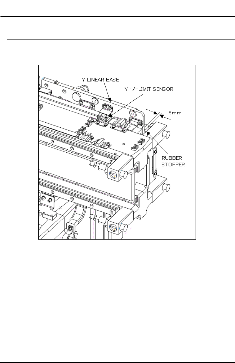 1) 若各个 RUBBER STOPPER 和 Y LINEAR BASE 的距离为 5mm 的话,进行调整使各个 LIMIT SENSOR