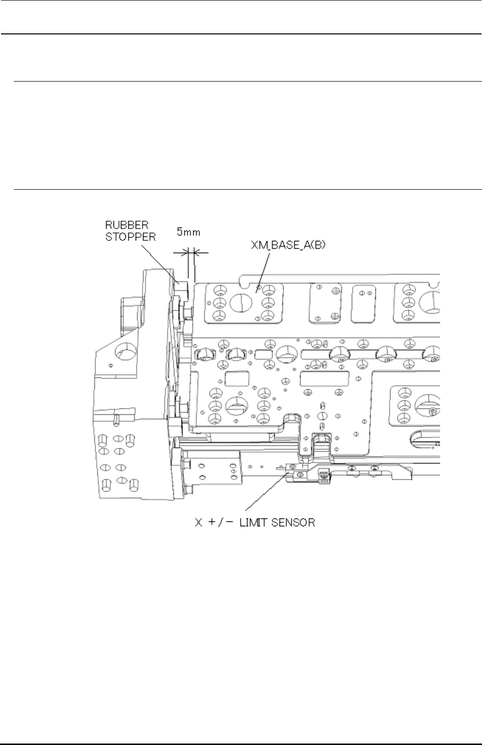1) 若各个 RUBBER STOPPER 和 XM BASE A(或 B)的距离为 5mm 的话,进行调整使各个 LIMIT SENSOR