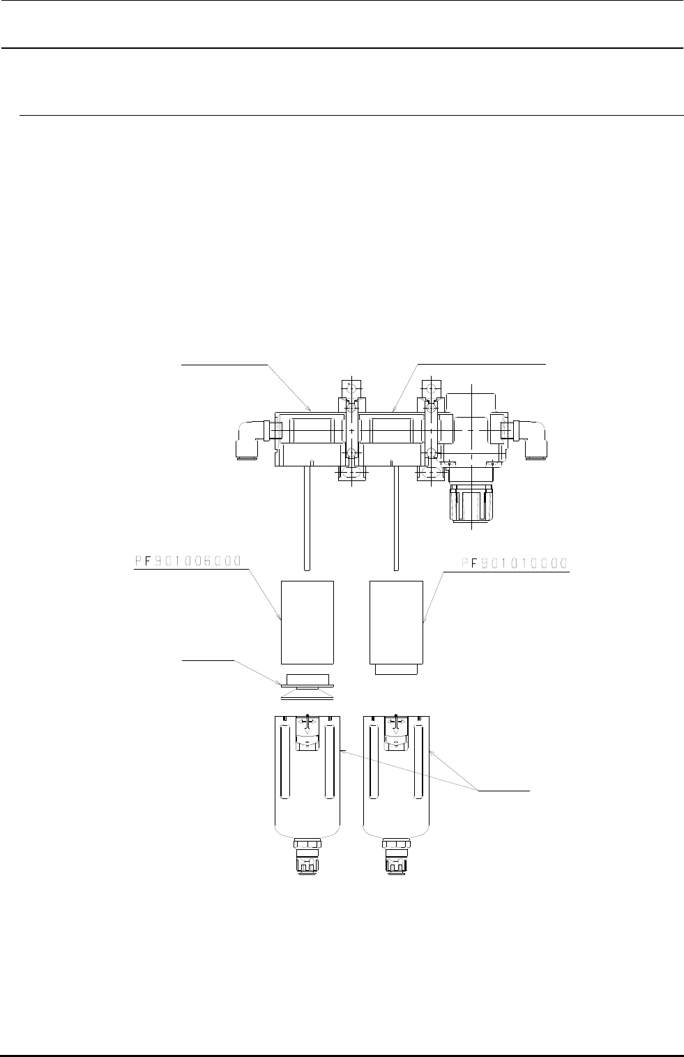 Rev1.00 维修调整要领书 9-4 9-3 . 数字压力开关(负压)的更换 1 ) 请确认真空泵未在运行。 2 ) 拆下螺钉两处取下保护罩 FSB_A (开闭保护罩), 请打开。 3 ) 从数字压力开关上拆下 φ 6 气管和连接器。 4 ) 旋转供料器开关支架 C 背面的树脂部件, 卸下数字 压力开关。 5 ) 装配时请按照相反的顺序进行。 9-3-1 . 数字压力开关(负压)的调整 更换数字压力开关后,请进行以下设置。 压力开关阈…