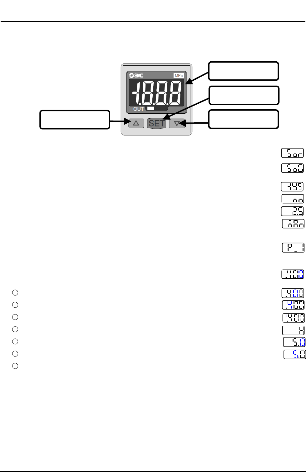 请按『△』或『▽』按钮,使在闪烁的位变成右图所示,再按『SET』按钮。『阈值 0.400MPa』