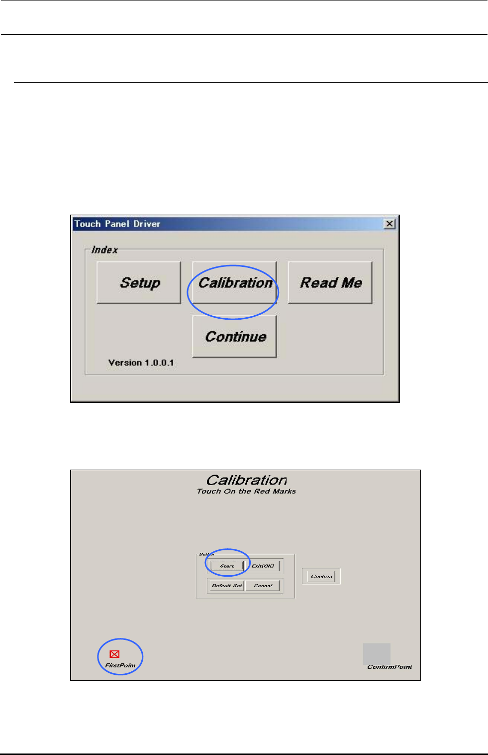 4) 第一个的校准点被显示。请用手指按下标记。