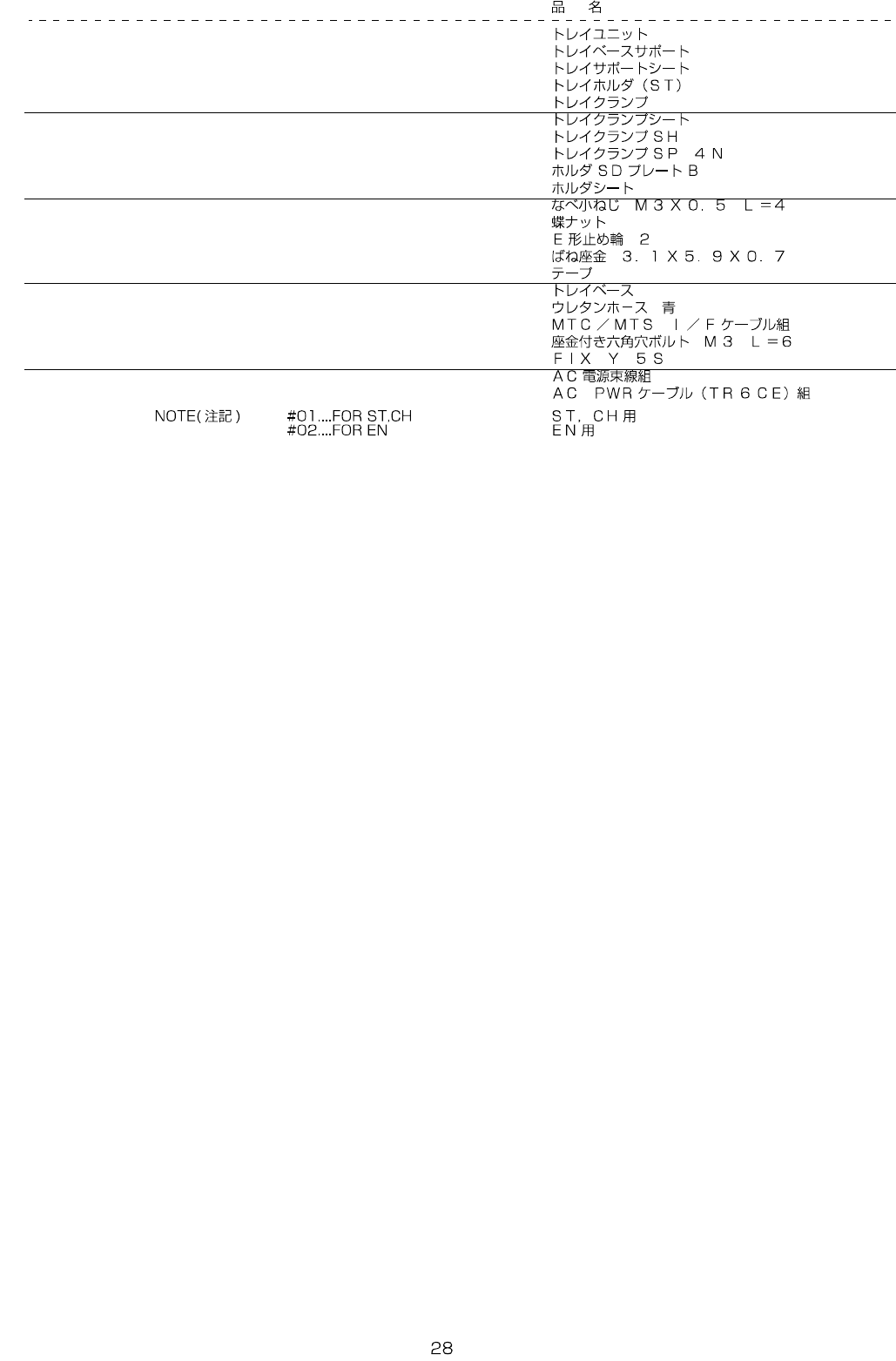 - - REF.NO NOTE P ART NO D E S C R I P T I O N Qty 1 4 01-5 5491 TRA Y UNIT 2 2 E 1552-72 6-000 T RA Y BAS E SUPPO RT (1) 3 E 1553-72 6-000 TRAY SUP PORT S HEET (1) 4 E 1570-72 6-000 TRAY HOL DER(ST ) (1) 5 E 1571-72 6…
