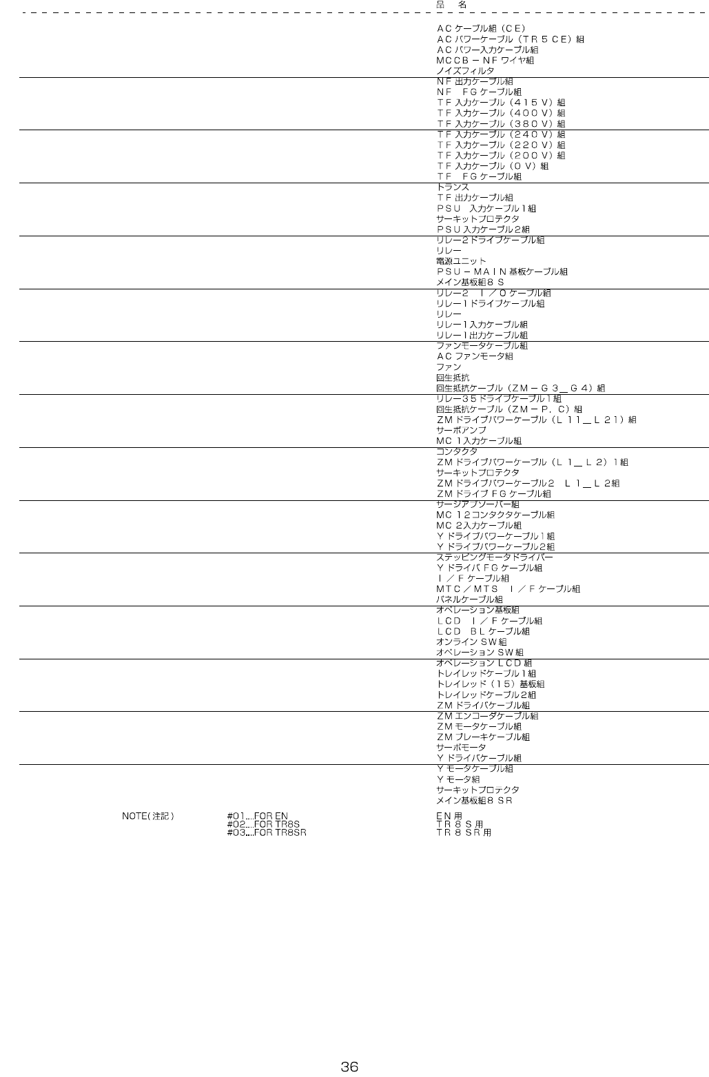 - - REF.NO NOT E P AR T NO D E S C R I P T I O N Q ty 1 E94 54 -723-A A0 AC C ABLE ASM (CE ) 1 2 #01 400-497 52 AC PWR C ABL E(TR5 CE) A SM 1 3 40 1-5336 1 AC POWE R INPU T CA BLE ASM 1 4 40 1-5435 8 MCCB-NF WIRE AS M …