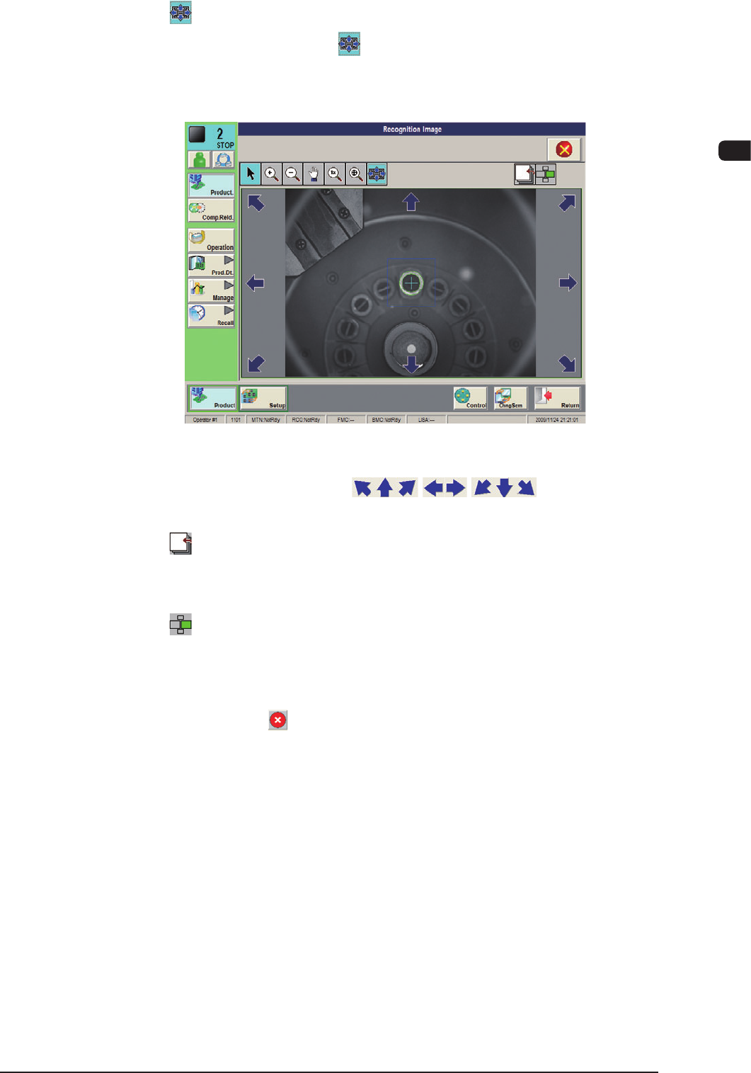 1OM-1603 2-13 2. Operation Screen : Chap.2 1012-002 [ ] Button : Image Matching Mode When the [ ] button is pressed, after the recognition image is displayed in the single display mode, the image movement buttons appear.…