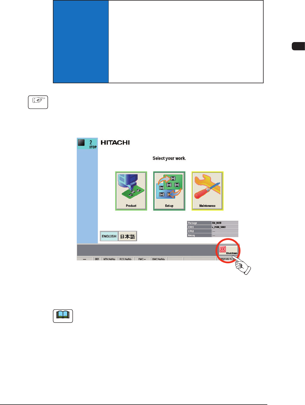 (2) Press the [Shutdown] button in the TOP window.