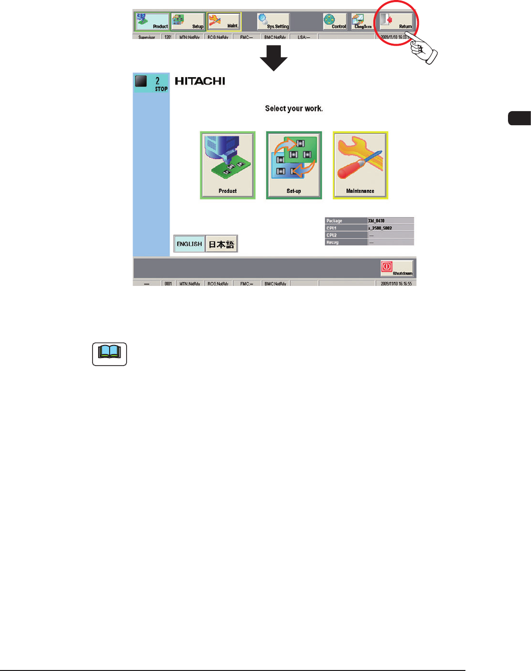 When the operation window is closed, press the [Return] button in the common