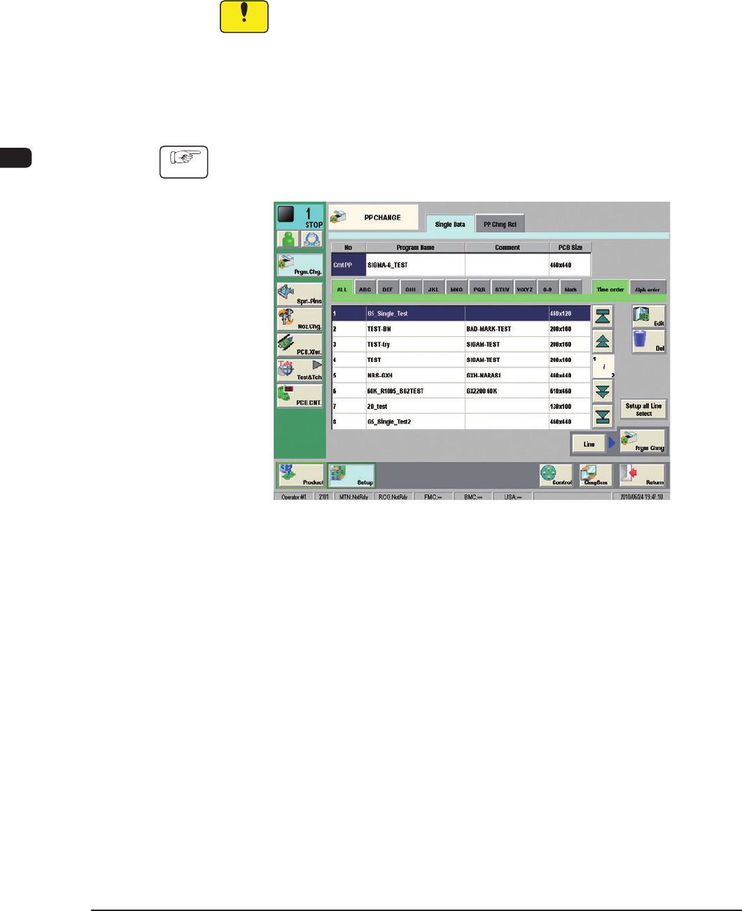 (1) Select the desired pattern program in the "PP CHANGE" window ("SETUP"