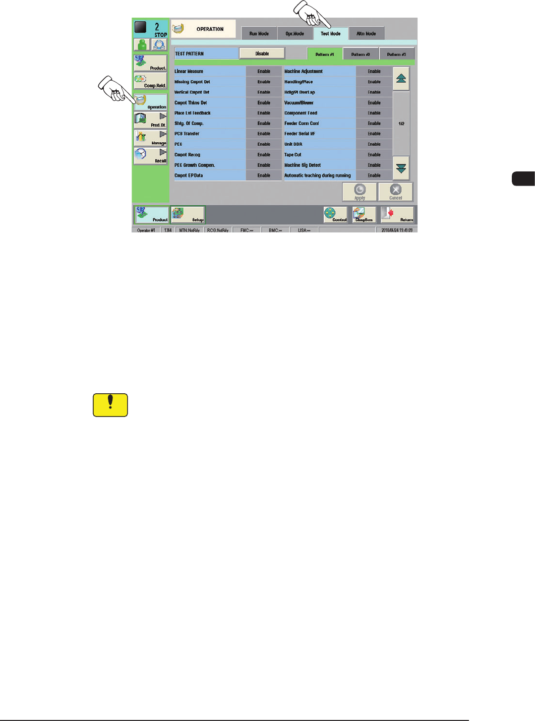 (3) Press one of the pattern buttons for a test run on running-in operation.