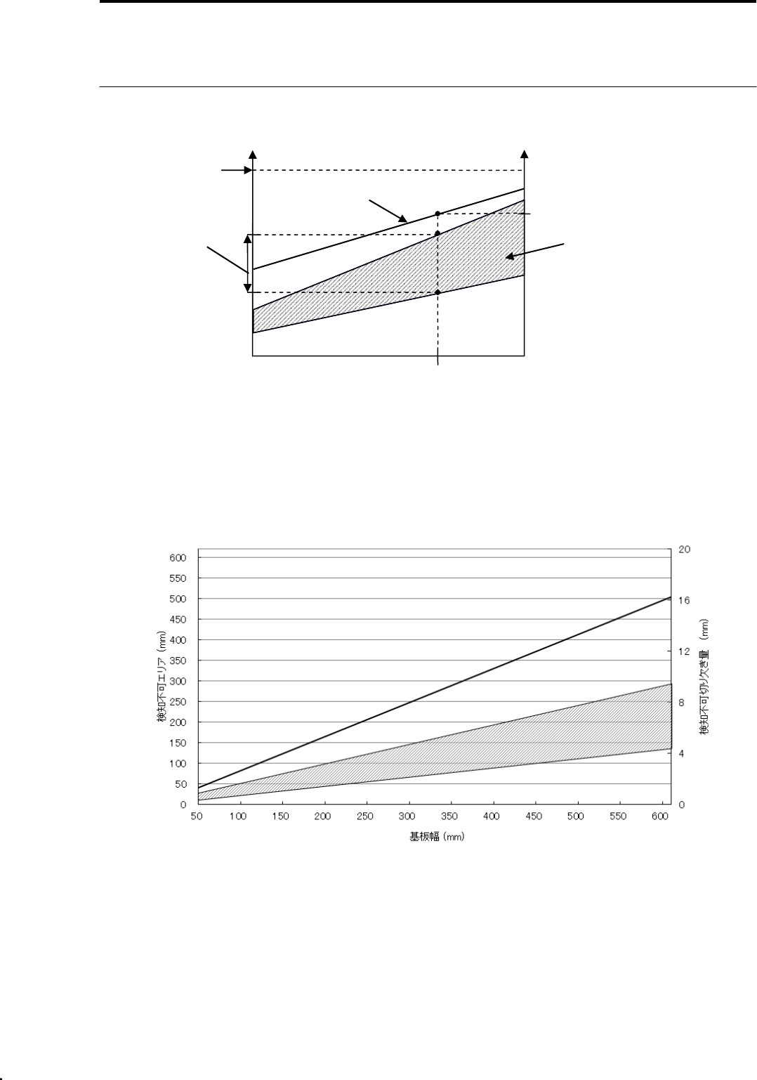 以靠装置外侧的基板顶端为 0,表示不能检测的切口范围 (mm)