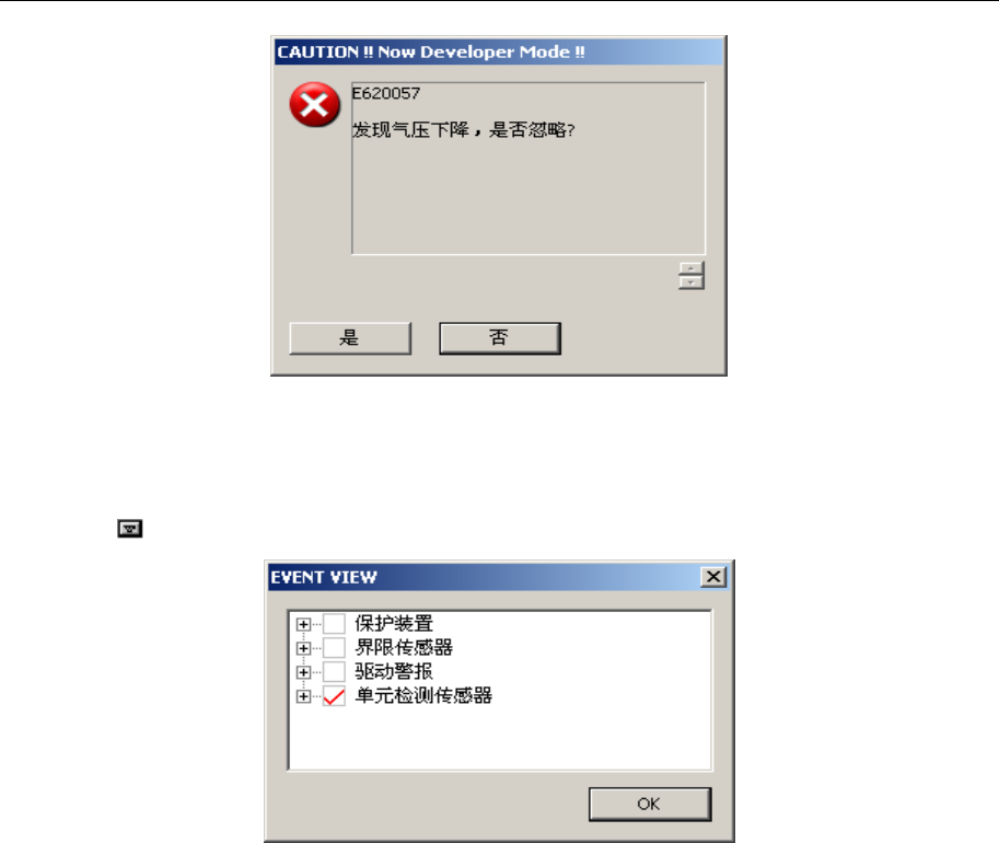 打开安全盖、按下紧急停止开关、或检测到各轴的伺服驱动的警报等时,显示如下画面。