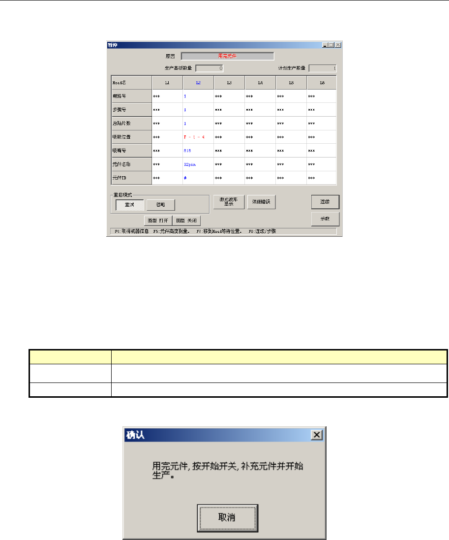 与元件用完时的暂时停止相同(参见2-11-1 元件用完)