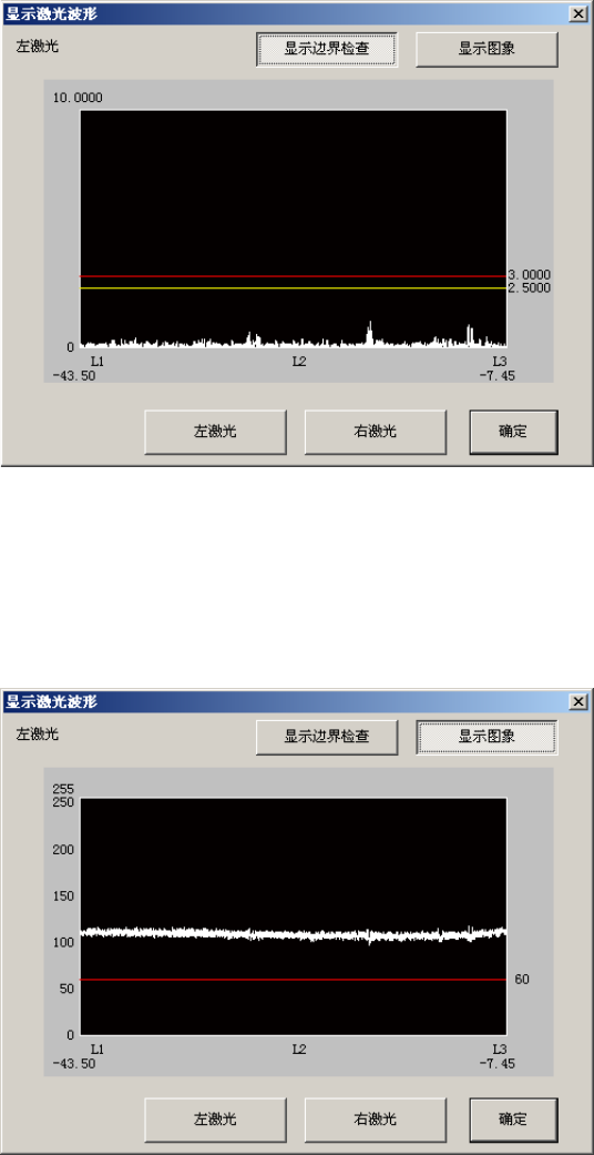 按下「左激光」按钮,可显示左激光的图像波形的结果。