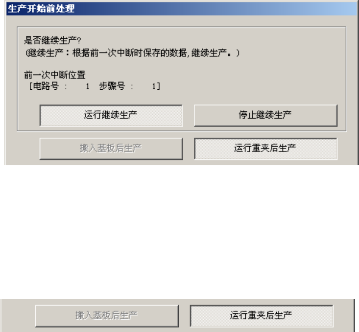 不论是否有继续生产文件,都将显示是“搬入基板后生产”,还是“运行重夹后生产”。