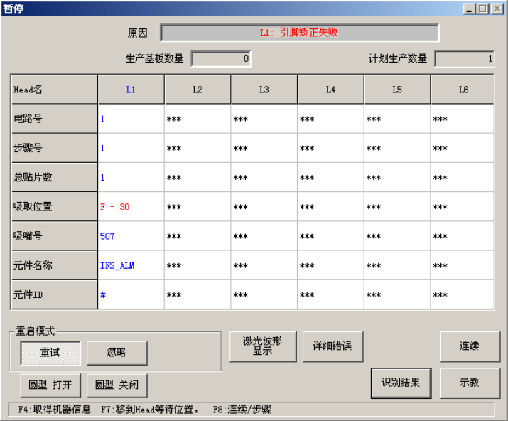 引脚矫正失败时,请根据识别结果确认下述失败条件。