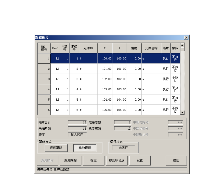 此时,贴片点一览表的当前行会变更为进行跟踪的行。