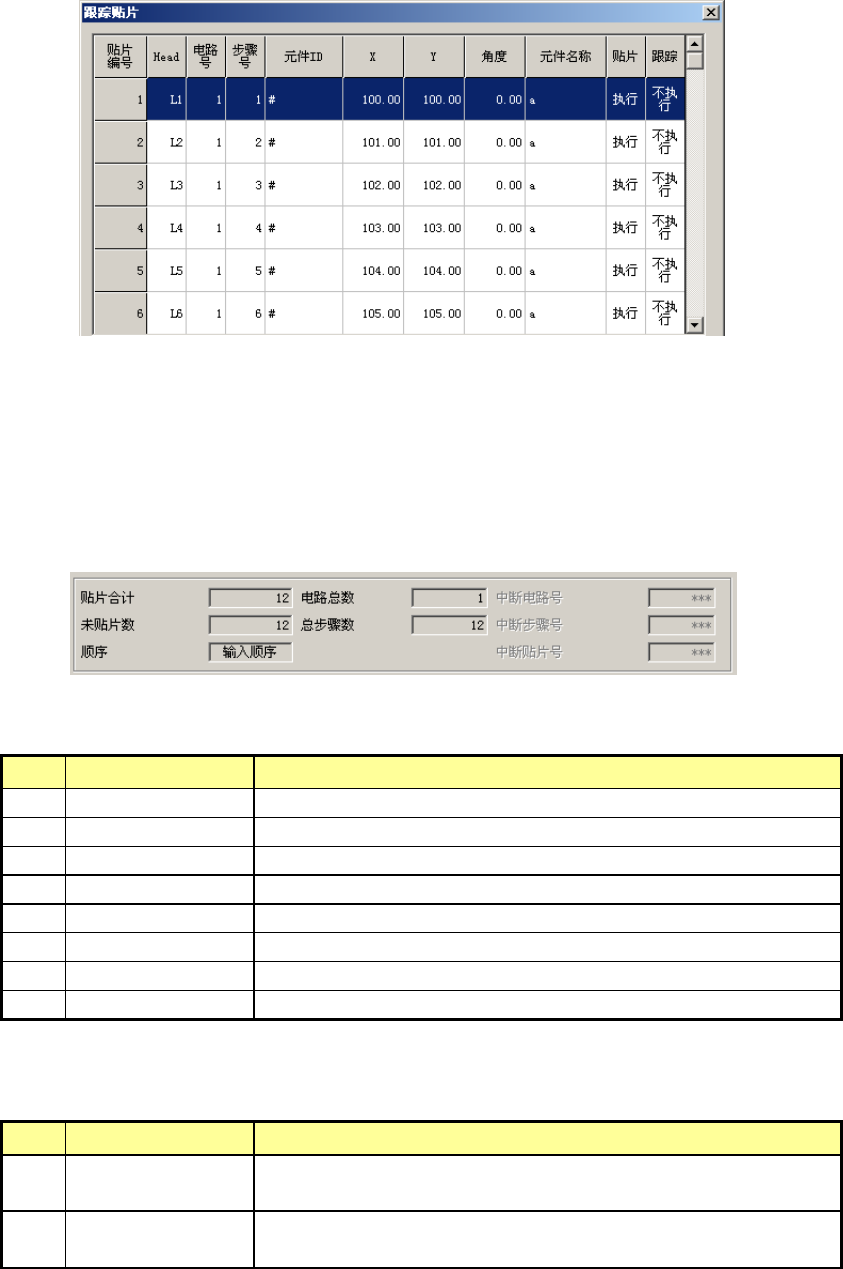 为了进行贴片跟踪,按照贴片编号顺序显示贴片元件信息。