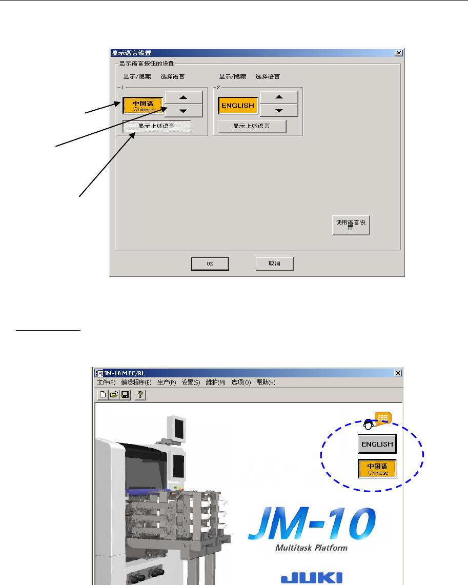 ③ “显示上述语言”∶按下按钮、凹陷状态的语言为使用的语言。