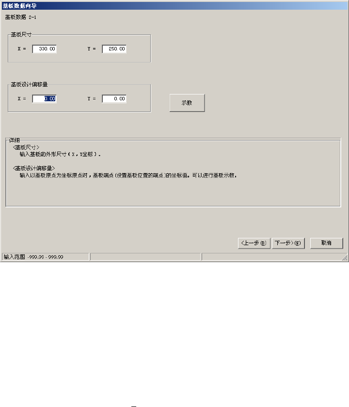 输入基板的外形尺寸。详情请参见 4-3-3-2 章。