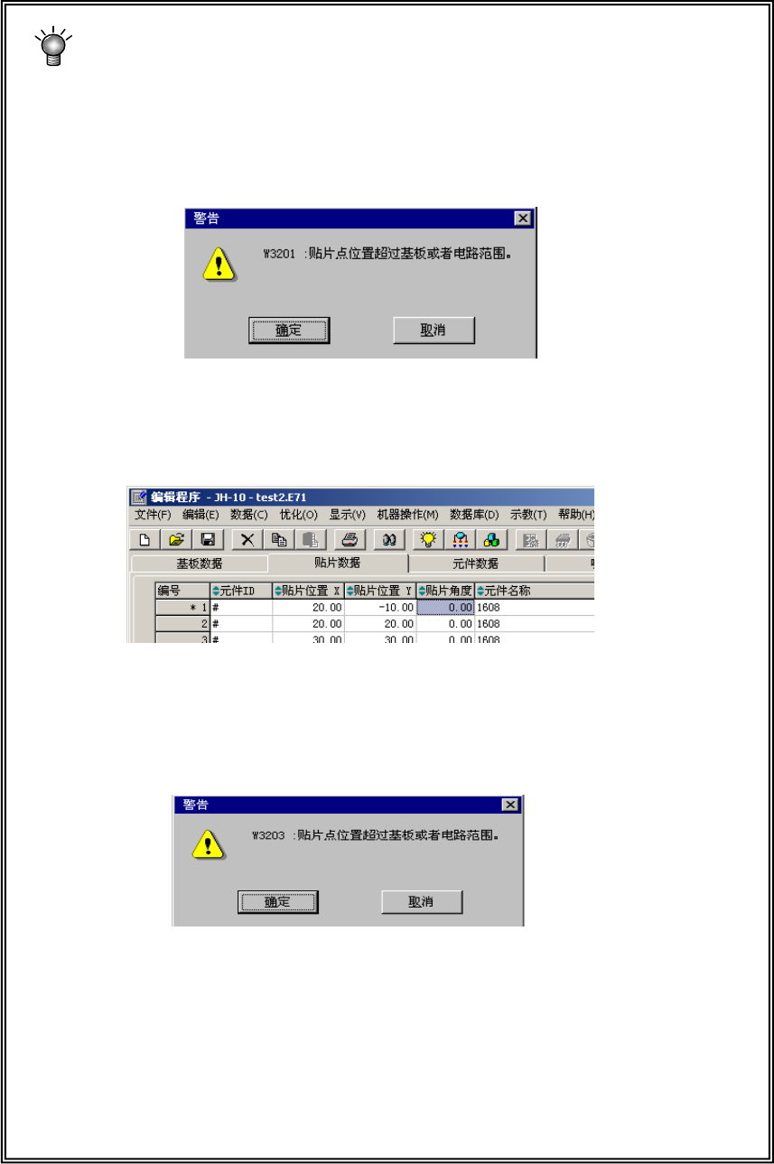 在输入贴片位置 X 或 Y 时,或分别对其进行了改变时,进行范围检查。