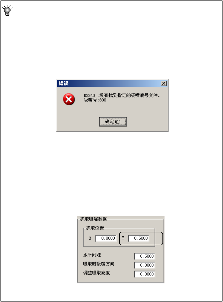 如果指定位置上不存在所输入的吸嘴号的吸嘴文件,将显示如下错误,不能进行设置。但标