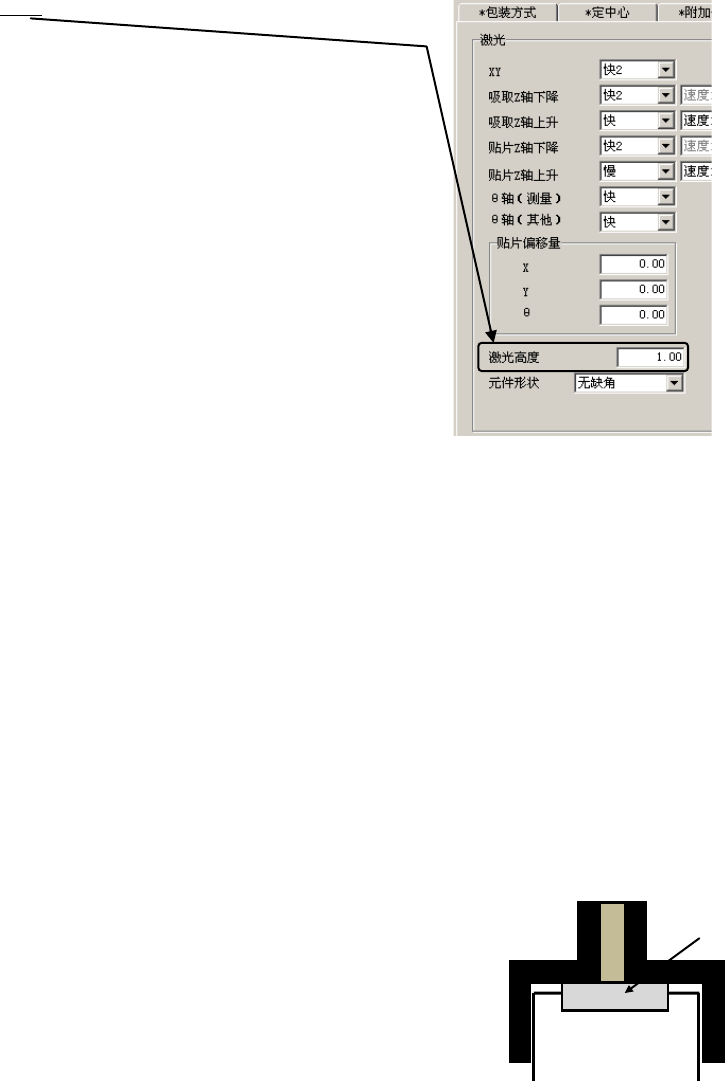 ③设置元件数据。设置激光高度 指定从臂前端至激光面的距离。