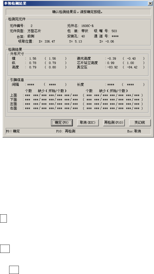 在单独检测过程中,显示如下画面。显示正在进行单独检测的元件的内容及吸取位置,