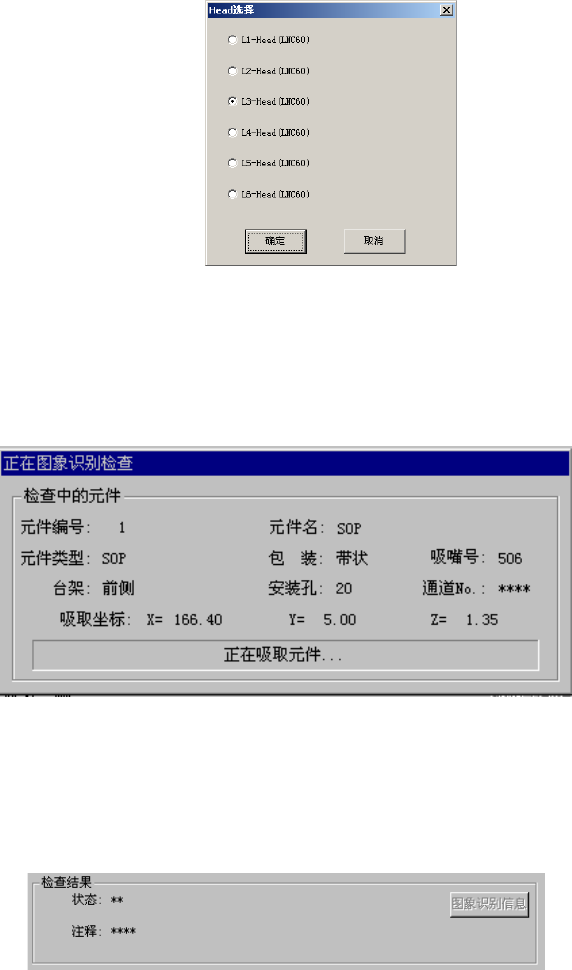 在图像识别检查中会显示如下画面。显示进行检查的元件内容/吸取位置,