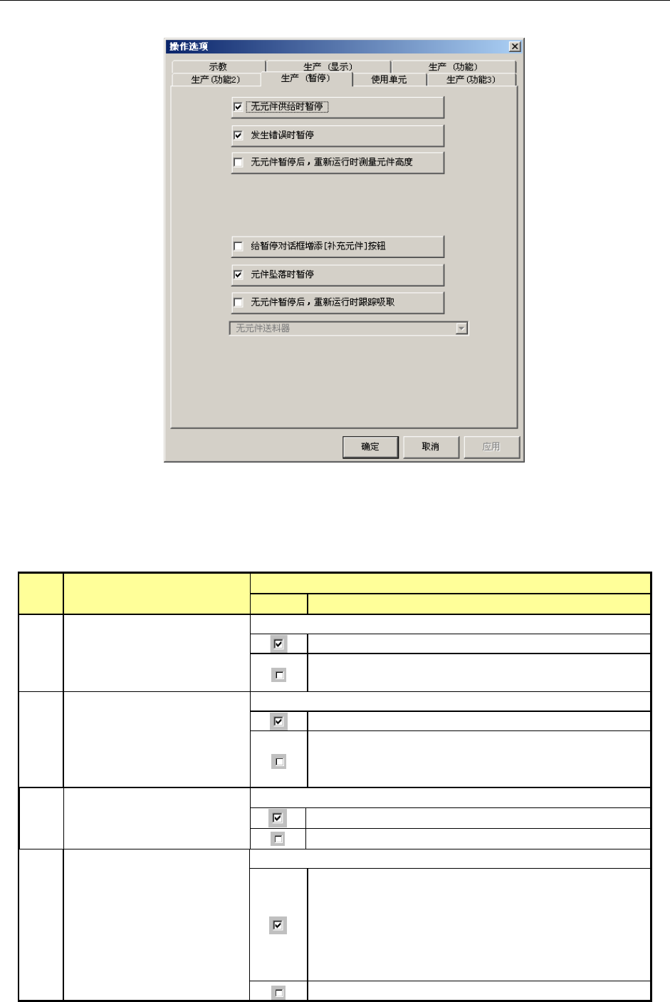 表 5-2-5-1 生产中暂停设置项目的细节和内容