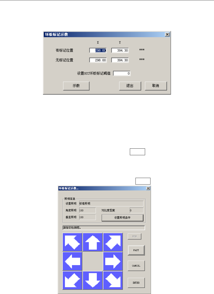 把光标对准设置 OCC 坏板标记阈值的编辑框,按下 HOD 的 CAMERA 键或按下示教按钮开始示教。