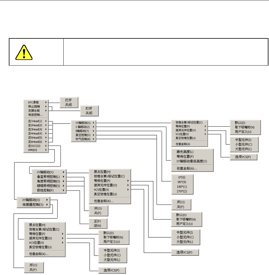 第 2 部 功能详解篇 第 7 章 手动控制 7-3 7-2- 2 退出手动控制 从菜单栏中选择 「文件」 / 「 退出 」 , 或选择命令按 钮的 「退出 」 , 则显示退 出的确认画面 。 图 7-2-2-1 安全方向 设置的确认画面 「 OK 」 :执 行 I/O 安全方向设置 后退出。 例如, 贴片头带有吸嘴时, 将吸嘴放回 ATC 后, 退出手动控制画 面。 「 CANCEL 」:返 回手动控 制画面。 选择 「确定 」 后,…