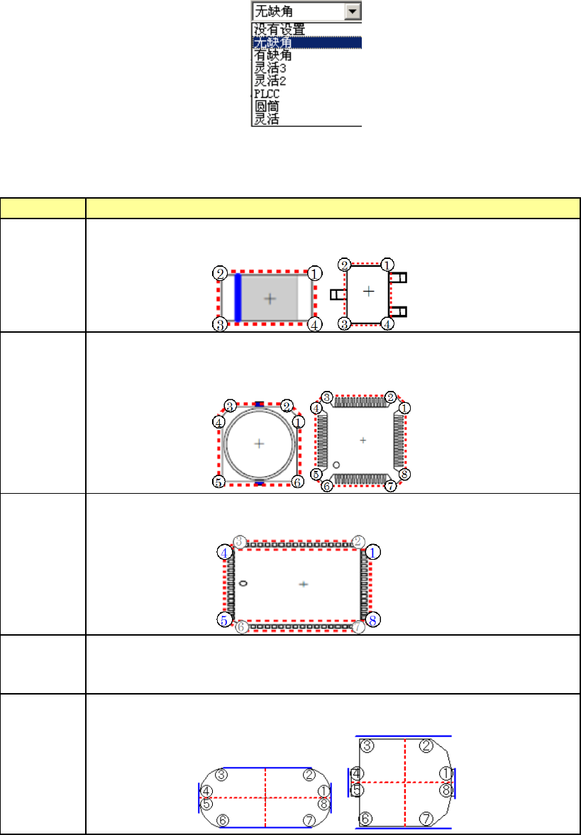 元件中只要有 1 个缺角,以及 QFP 等在激光测量位置有引脚的元件,可设