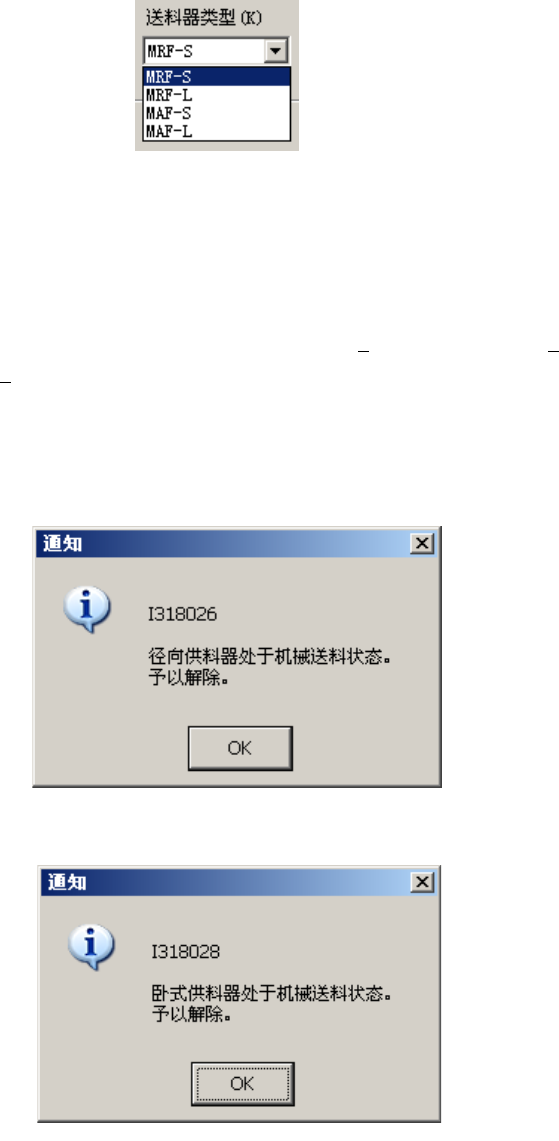 在夹紧状态下关闭供料器控制时,会显示解除夹紧的提示信息,在按 OK 按钮、解除夹紧后