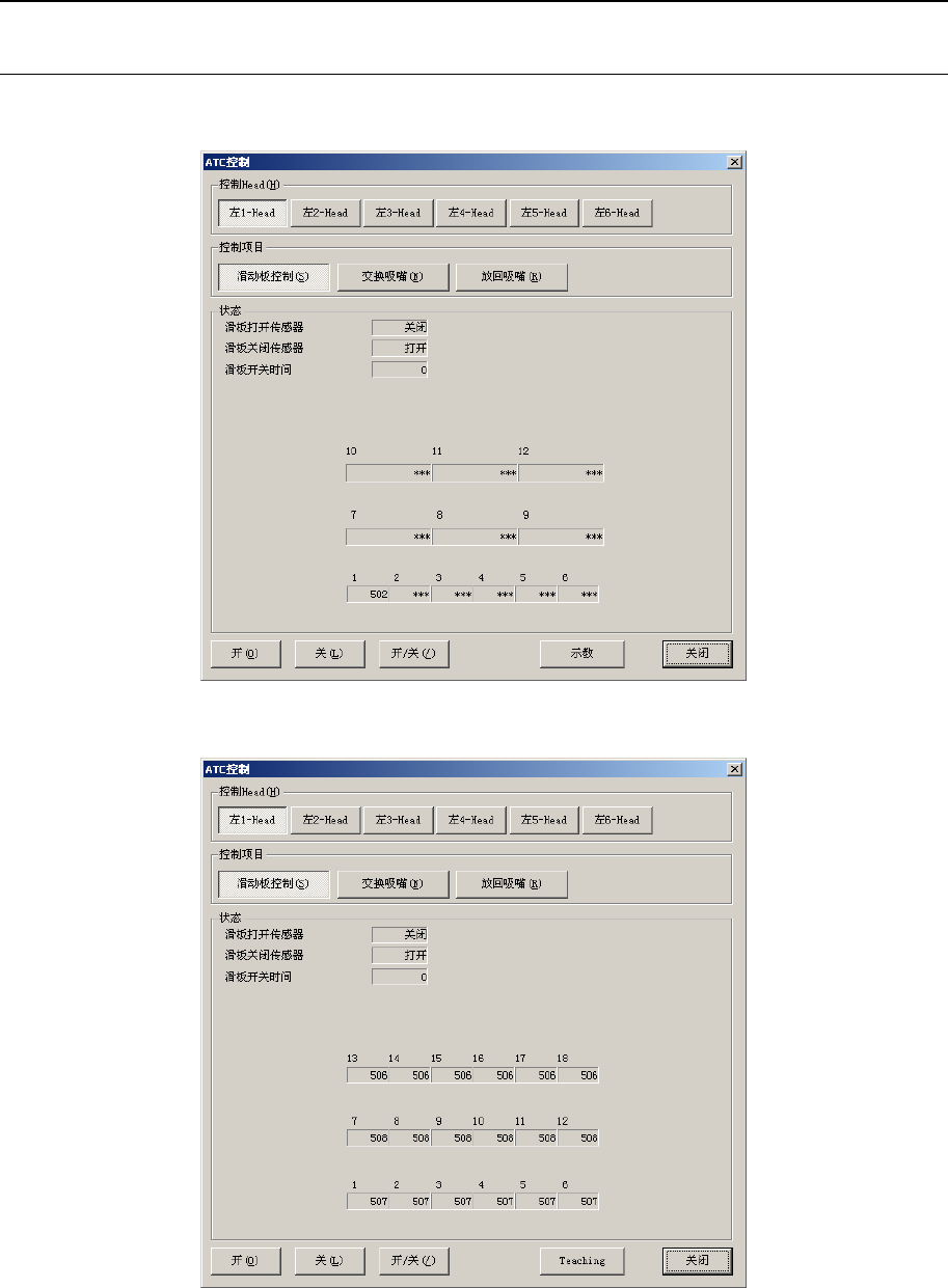 吸嘴被正常安装后,会在“状态”的 ATC 编号上出现贴片头标记(“L1”、 … 、“ L6”)。