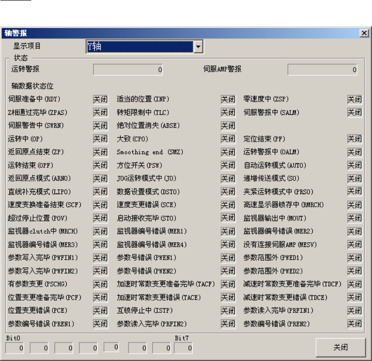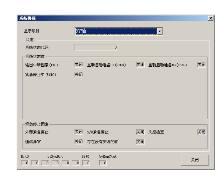 在驱动情况对话框上,按下[轴警报]按钮后,显示如下画面。