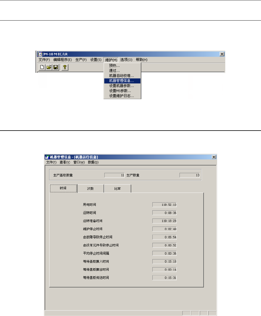 显示机器的运行时间(累计基板生产时间等)、吸嘴拆装次数等设备固有的运行信息。