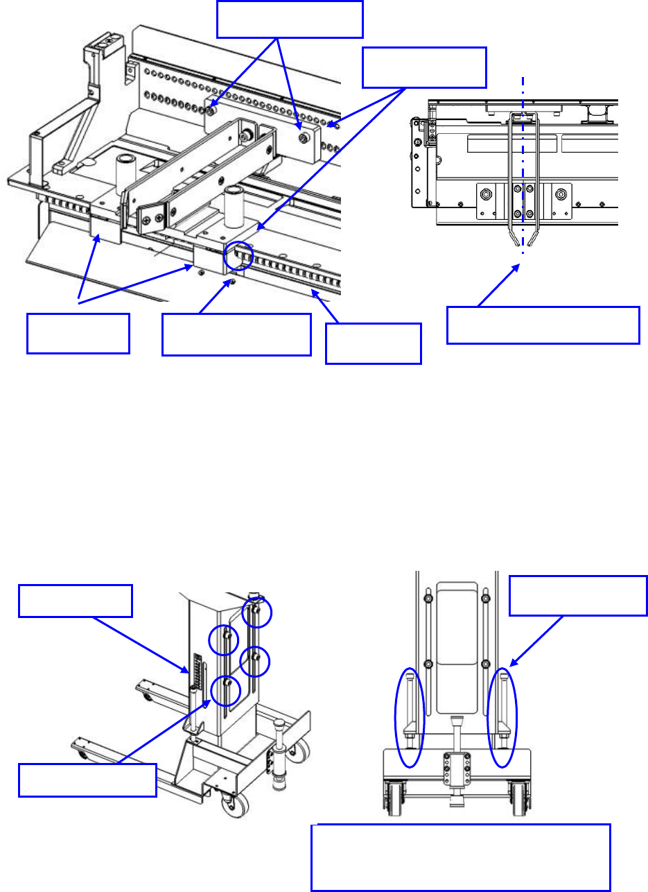 松开 4 处 M10 螺丝,旋转侧面的 M12 螺丝调整高度。