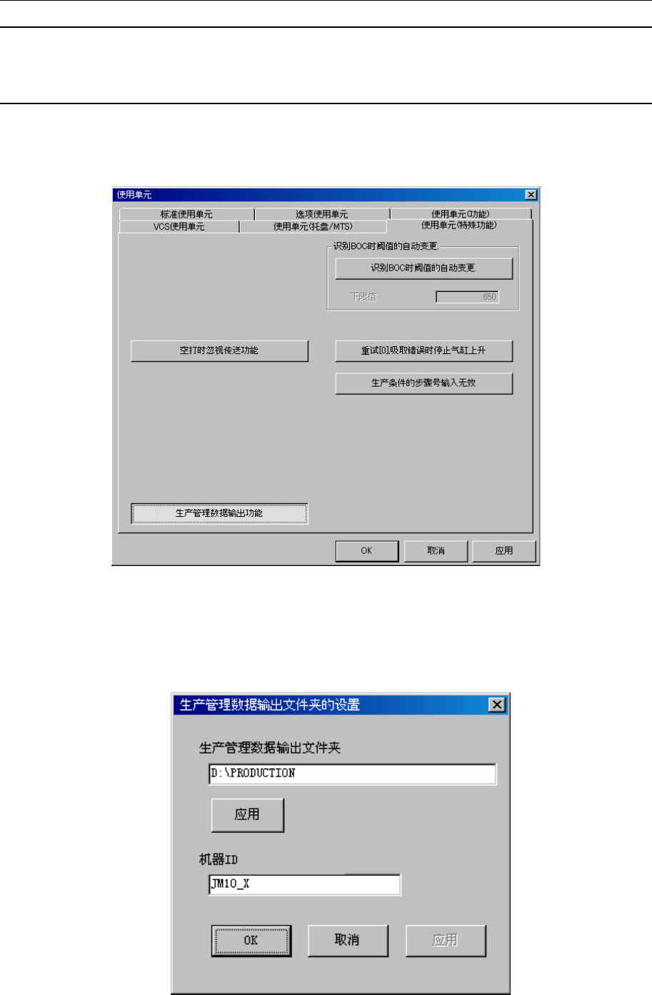 「使用单元特殊功能」,即显示以下对话框。请在此对话框中,将「生产管理数据输出功能」