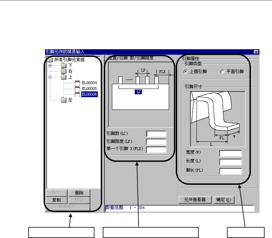引脚元件要素组的数据。此外,也可进行元件要素组的追加、复制、粘贴、删除等操作。