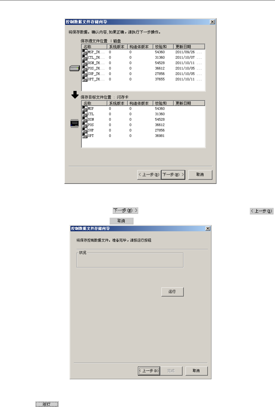 第 2 部 功能详解篇 第 13 章 程序补充 13 - 10 13 -2- 1 操作方法 请从菜单栏中选 择「文件 (F) 」→「控制数据 管理 ... 」。 图 13-2-1-1 控制数据文件保管器 请从单选按钮 ( 下表的 4 个项 目 ) 选择作业内 容,再按下 按钮。 选择项目 内容 1 把控制数据保 存到闪存 卡上 将控制数据 保存到主机的 闪存中。 2 控制数据文件 是 保存在硬盘 , 或者 USB 等外部记忆 装置 上 …