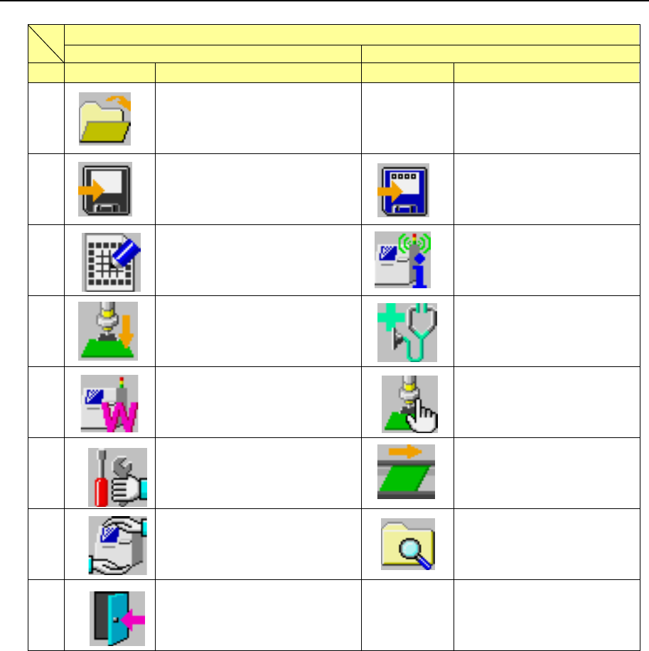 第 1 部 基本篇 第 1 章 设备概要 1- 66 1-4-2 命令按钮的构成 将菜单各项中常 用的项目 设为命令按钮。 选择命令 按钮可启动该项 。 可通过命令按钮 、鼠标或 触摸式控制板 ( 可选单元 ) 选择命令按钮。 含有命令按 钮的画面如 下。 1. 桌面 2. 生产 3. 机器设置 4. 手动控制 5. 自动校准 6. 装置运行信 息 以下显示各命令 按钮的构 成 , 并简要说明其 相应的使用方 法。