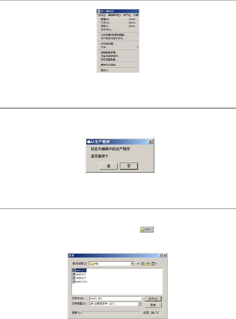 如有未保存的生产程序时显示询问信息。(参见1-5-1新建)