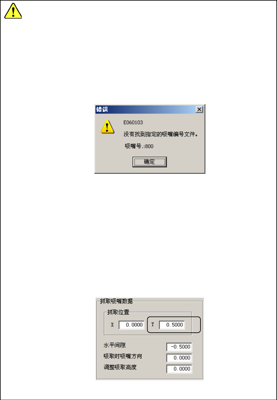 显示错误时,请确认错误信息中所写的吸嘴编号之吸嘴文件是否位于指定位置上。虽 然 文