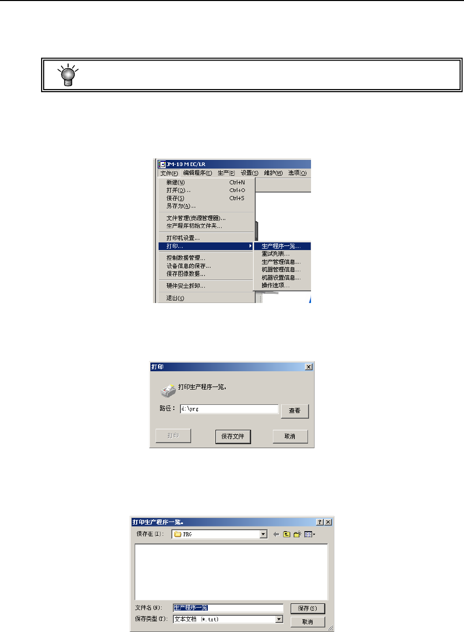 打印保存在指定路径(=文件夹)中的生产程序一览。