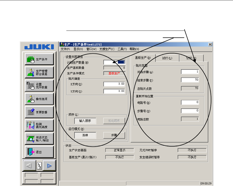 根据“基板生产”、“试打”、“空打”各种生产模式,分别设定各自的生产条件。