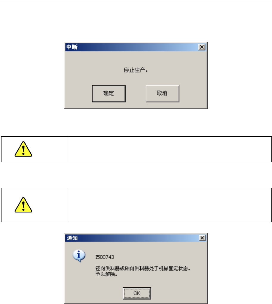<STOP>开关。此时显示如下的确认画面。单击「确定」后,生产将被中断。
