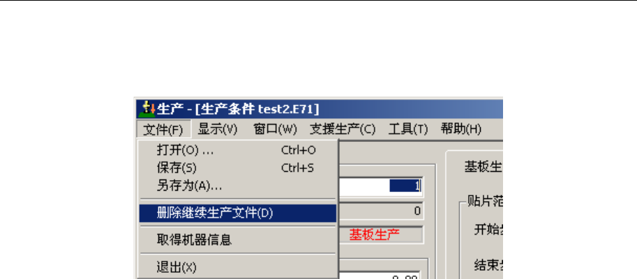 继续生产数据存在时,菜单栏中的[文件]/[删除继续生产文件]与工具栏的按钮显示为有