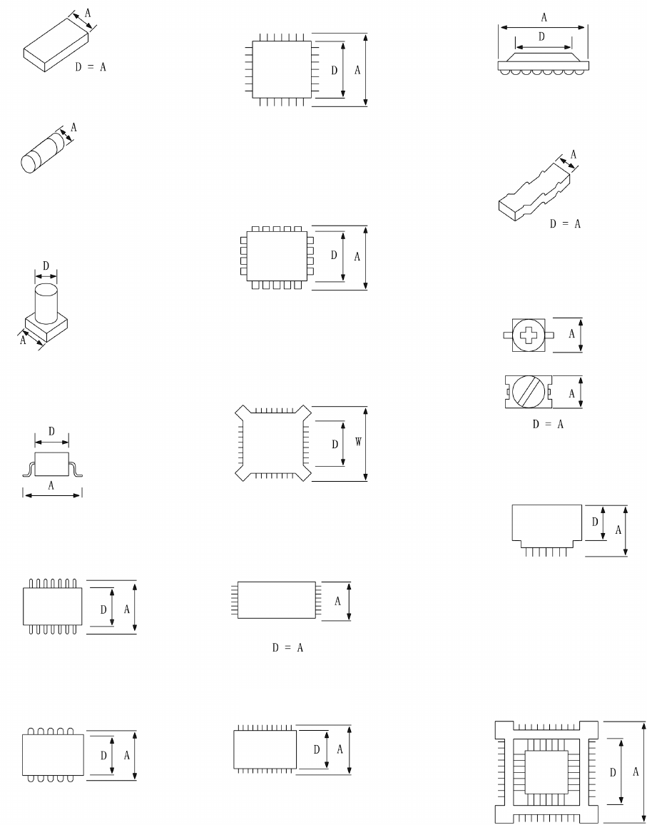 各种元件吸取面的最小尺寸(D)请参见(3)项。