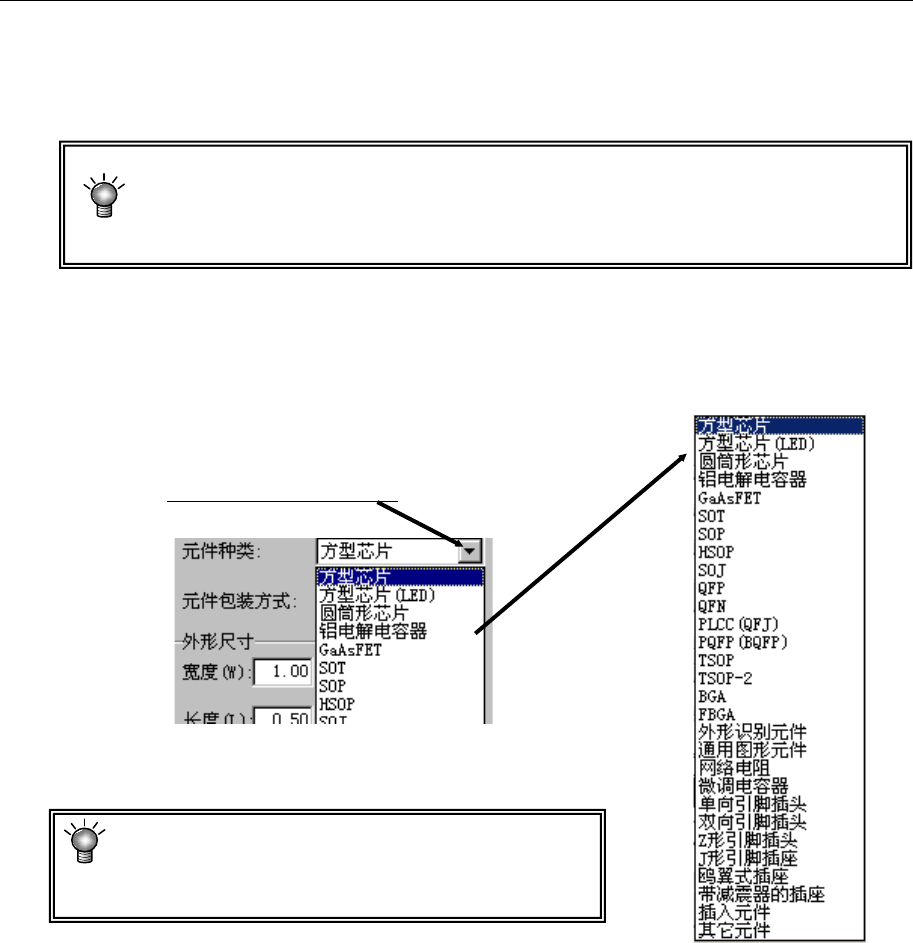从显示的包装方式一览表中选择元件供给装置的种类。需要进行变更时,请从下拉式一览