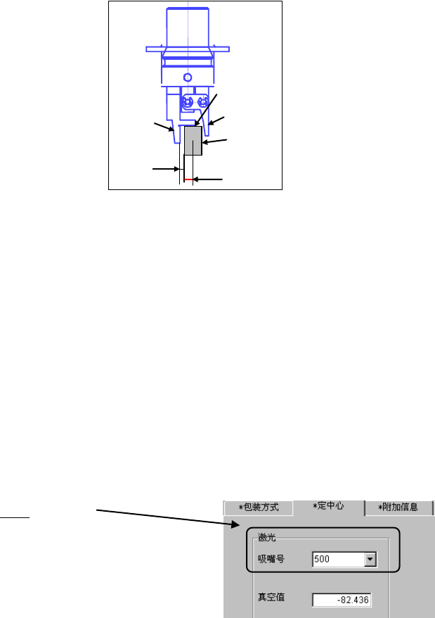 ① 抓取位置: “Y”项,输入元件中心与夹持吸嘴固定侧手臂抓取面中心的偏移