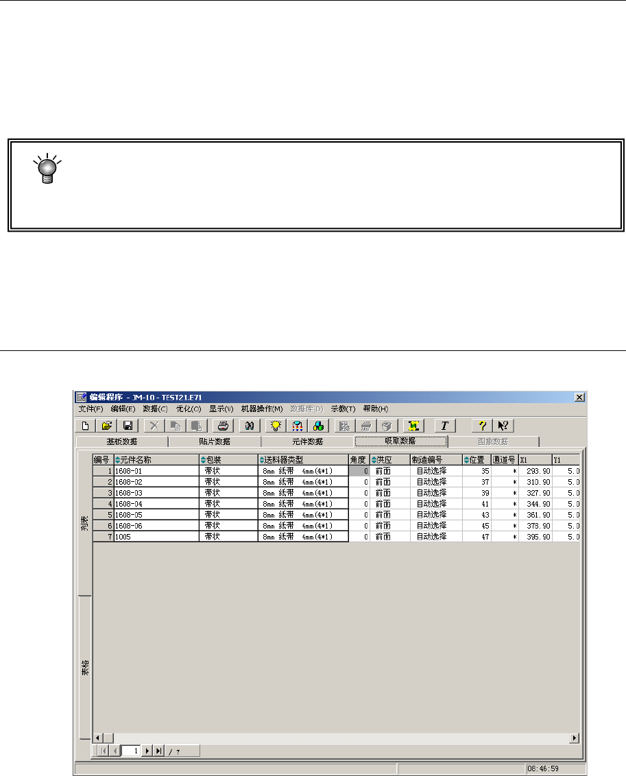 元件名、包装方式、供给装置,可分别显示在贴片数据及元件数据中输入的数值。